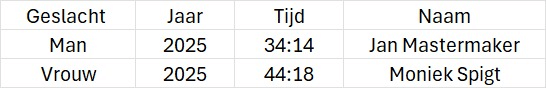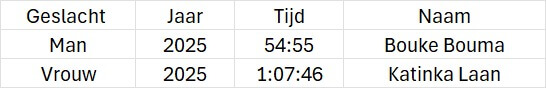 | 12:45 uur | Prijsuitreiking 5 km, 10 km en de 16,1 km |